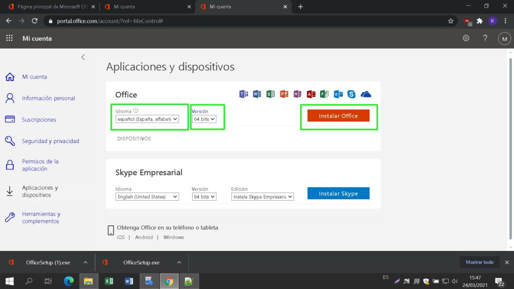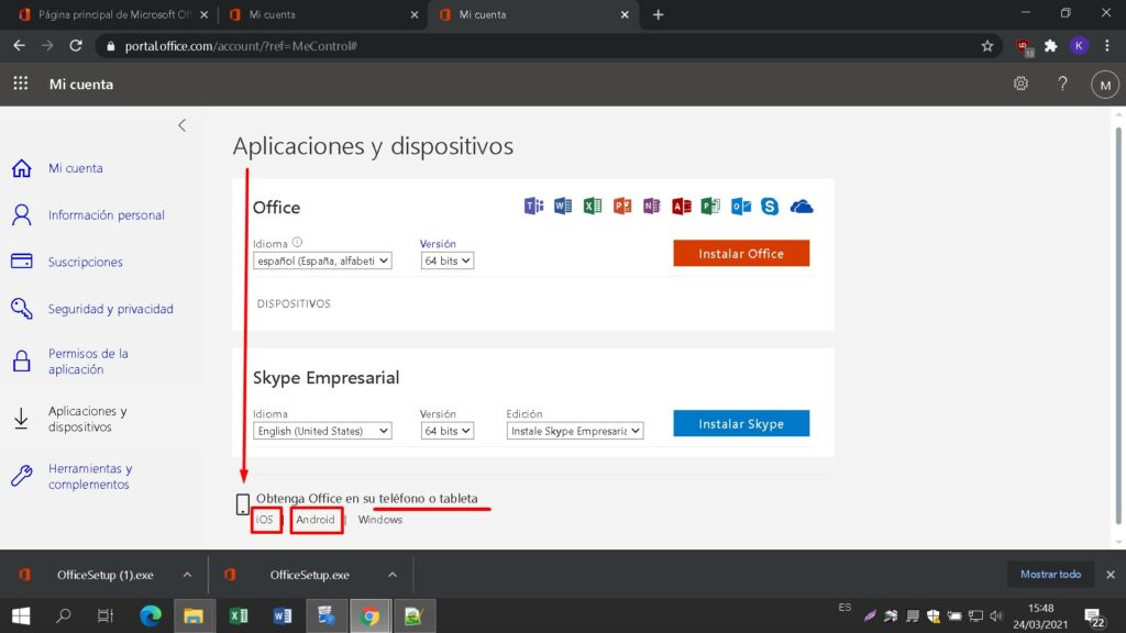 If you want to install Microsoft Office 365 for your iOS or Android phone or tablet, you must go from your device to the bottom of this interface, choose the correct option and you will be redirected to the App Store or Google Play Store to proceed with the installation of the application.